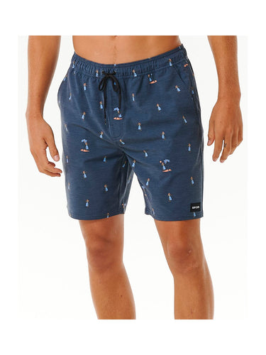 Boardshorty Rip Curl Hula Volley to świetne męskie boardshorty o krótkim kroju, z długością do kolan, 18". Zostały wykonane z niezwykle komfortowej, elastycznej tkaniny Triflex, która powstała z przetworzonych butelek PET. Szorty posiadają wygodny krój, z bocznymi kieszeniami, elastyczną talią ze sznurówką oraz tylną kieszonką. Zabawny hawajski nadruk od razu przenosi nas w wakacyjny klimat.