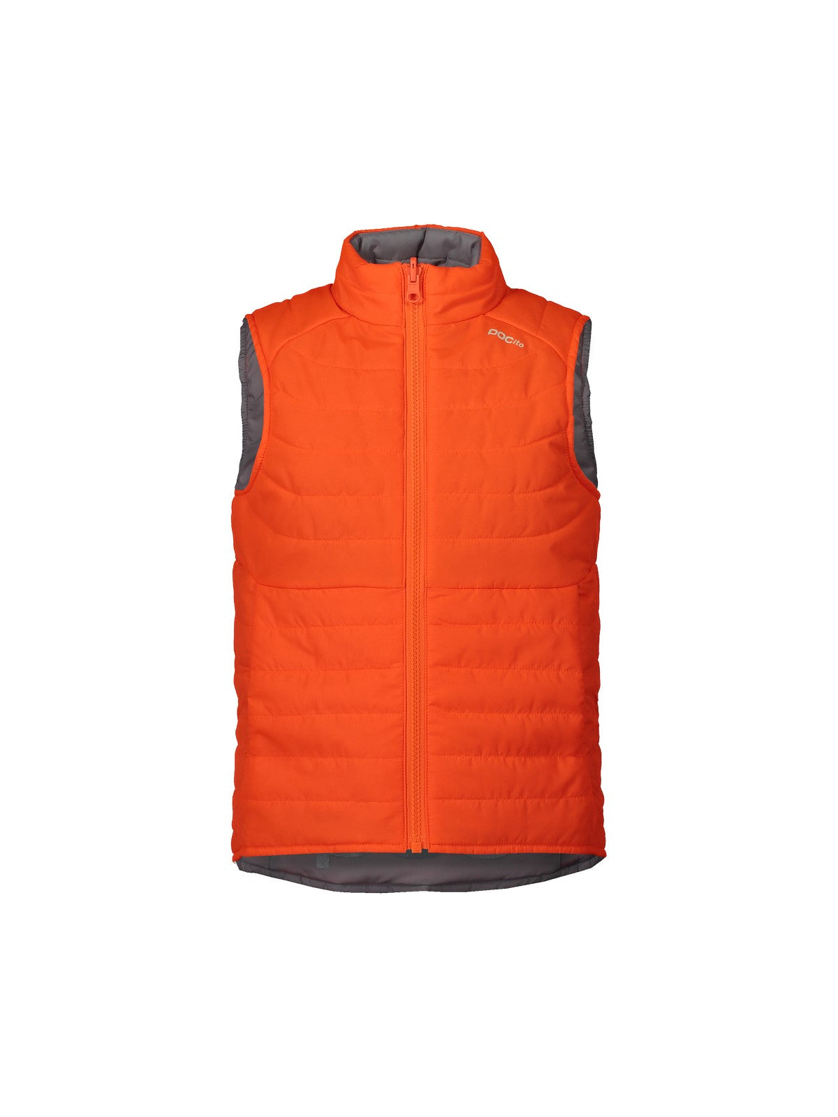 Dzięki jasnej, wyjątkowo widocznej fluorescencyjnej pomarańczy z jednej strony i szarości z drugiej, ta dwustronna kamizelka zwiększa widoczność dziecka na drodze. Elementy odblaskowe, w tym logo POC, znajdują się po obu stronach kamizelki.