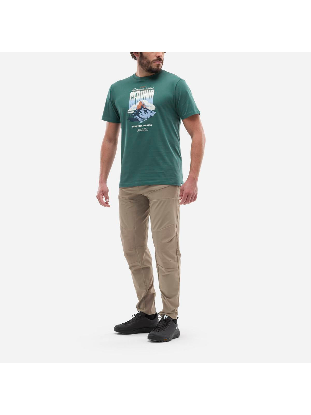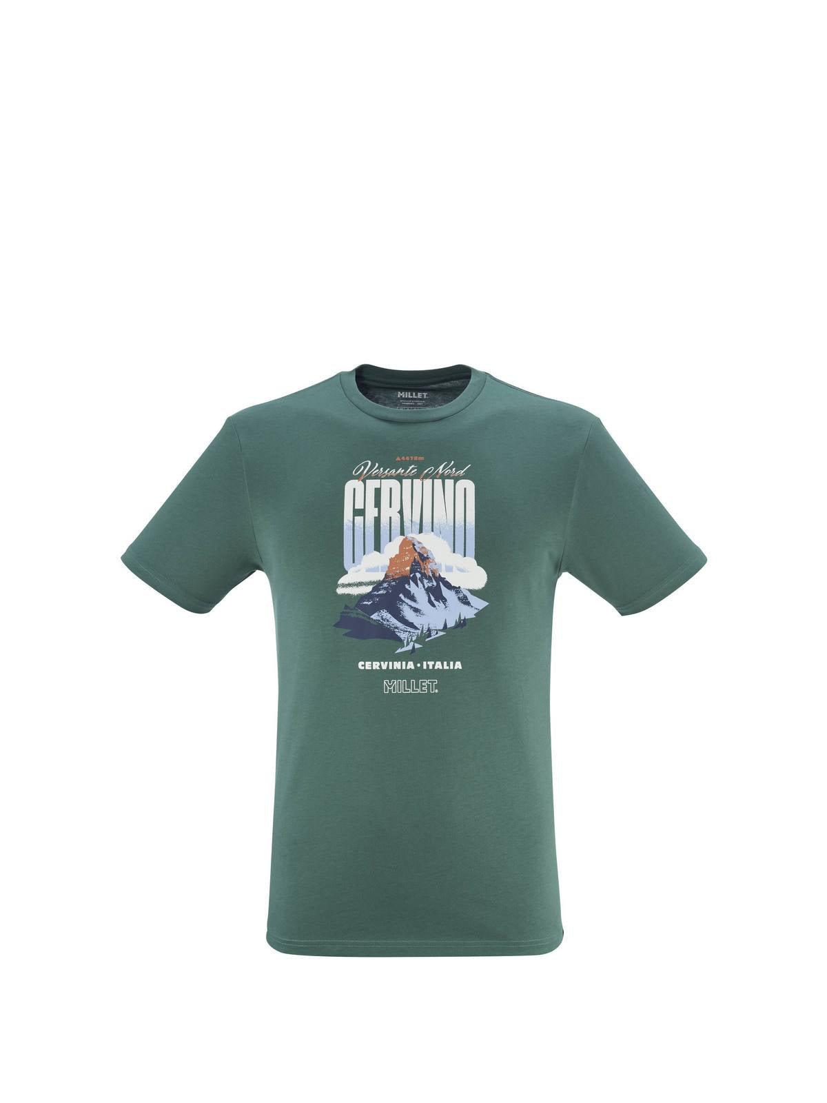 Koszulka MILLET CIMAISUMMIT TS SS M to wyjątkowy hołd dla alpejskiej trylogii – Matterhorn, Eiger i Grandes Jorasses – trzech legendarnych szczytów, które inspirowały pokolenia wspinaczy.