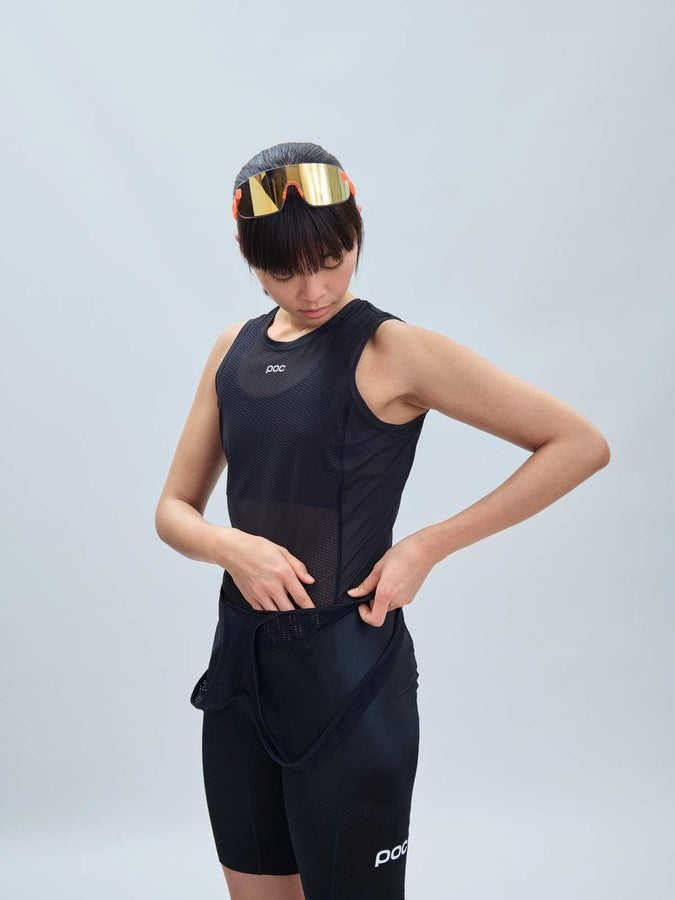 POC W's Essential Layer Vest w kolorze Uranium Black to damska koszulka bazowa zaprojektowana z myślą o zapewnieniu maksymalnego komfortu podczas jazdy na rowerze. Wykonana z lekkiej, oddychającej siateczki, skutecznie odprowadza wilgoć od ciała, utrzymując skórę suchą nawet podczas intensywnego wysiłku.