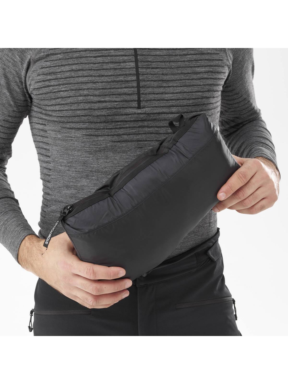 • Kompresyjna kurtka, którą można spakować do własnej kieszeni w celu kompaktowego przechowywania
