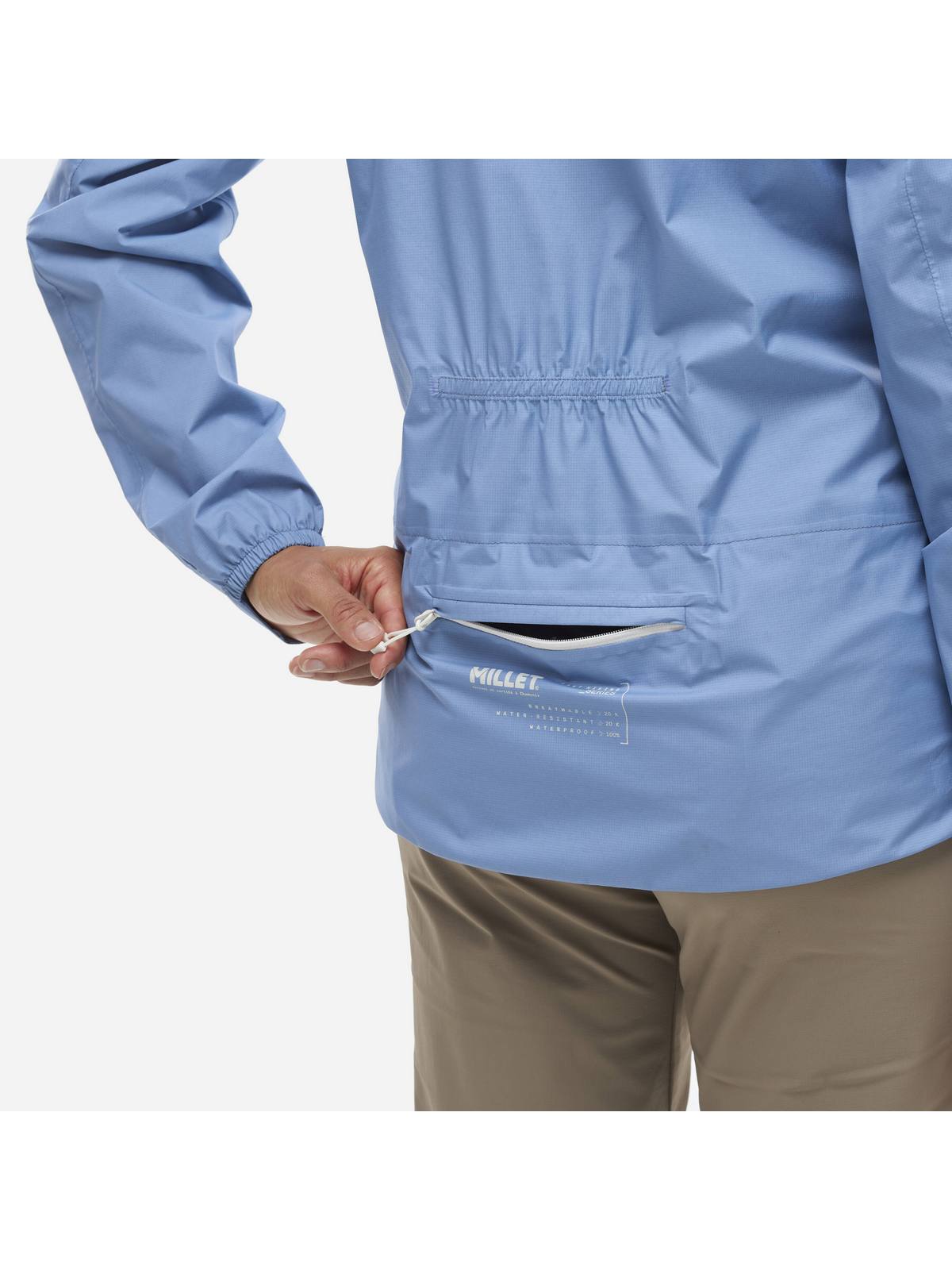 MILLET WANAKA LIGHT 2.5L JKT W to damska kurtka trekkingowa, która łączy niską wagę, oddychalność i wodoodporność w jednej funkcjonalnej formie. Wykonana z trwałego materiału ripstop, świetnie znosi trudy szlaku, jednocześnie zapewniając komfort i swobodę ruchu. Wyposażona w wentylację pod pachami oraz kieszenie zapinane na suwak, które pomieszczą niezbędne drobiazgi. Co więcej, po złożeniu można ją zamienić w wygodny pasek z zintegrowanymi kieszonkami – praktyczne rozwiązanie na szlaku i w podróży.