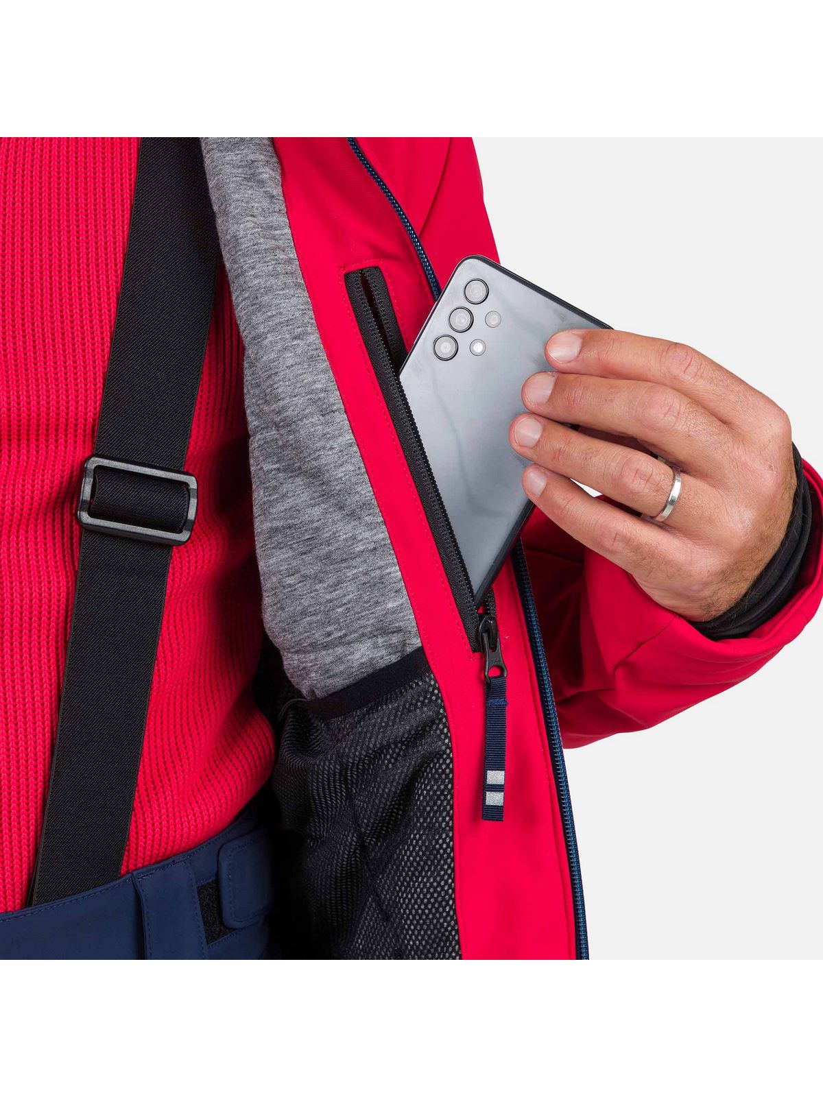 Funkcjonalne detale: liczne kieszenie, w tym kieszeń na skipass, kieszeń na gogle, odpinany kaptur, regulowane mankiety oraz elastyczny pas śnieżny gwarantują pełną ochronę przed śniegiem i wiatrem