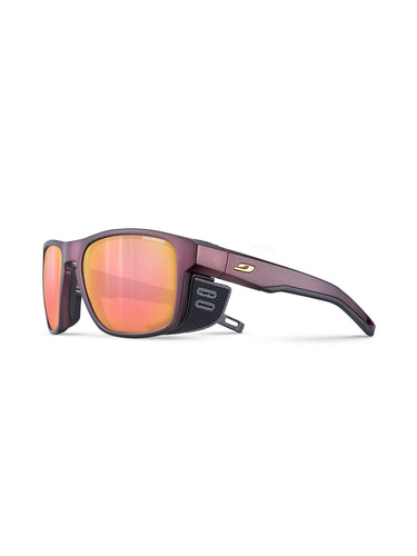 Oglądany model Julbo Shield M wyposażone są w soczewki fotochromowe z polaryzacja Reactiv Glare Control kat. 2 do 3 - ciemnieją lub rozjaśniają się w zależności od natężenia światła. Doskonale radzą sobie z odbiciami światła dzięki niskiej polaryzacji (85%), jednocześnie umożliwiając odczyt wszystkich typów ekranów. Posiadają współczynnik przepuszczalności światła widzialnego: 9% do 20% Zapewniają 100% ochronę przed promieniami UVA, UVB, UVC