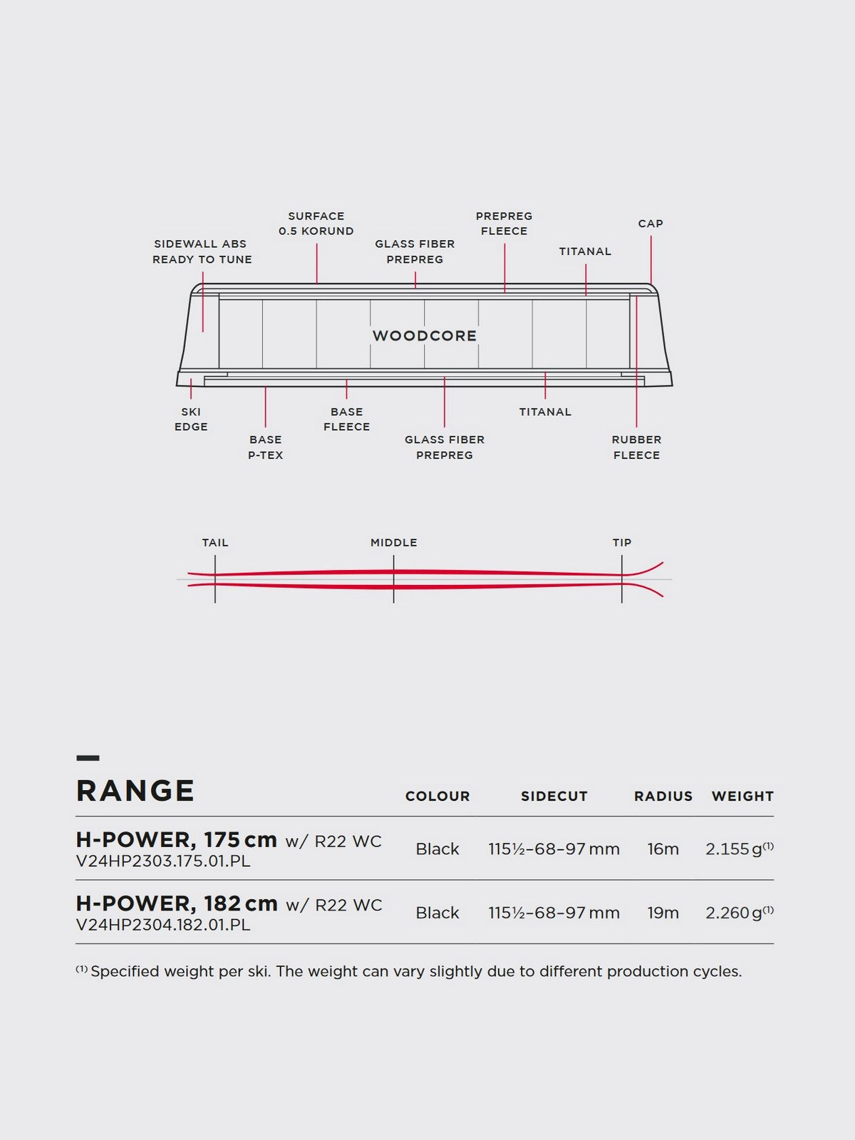 Z talią wynoszącą 67 mm, H-POWER oferują wyjątkową zwinność i łatwość manewrowania, a w porównaniu do modelu SL WORLD CUP posiadają nieco mniejszy promień skrętu oraz dodatkową długość, co wpływa na większą stabilność podczas jazdy. Konstrukcja obejmuje dwie warstwy Titanalu w połączeniu z rdzeniem z drewna jesionowego i topoli, co gwarantuje siłę przenoszenia mocy porównywalną z nartami używanymi przez Marcela Hirschera. Wysokiej jakości materiały, takie jak pełne ściany ABS, warstwy prepreg, zawodniczy ślizg P-Tex oraz rdzeń z drewna, czynią te narty doskonałymi do dynamicznej jazdy po przygotowanych stokach.
